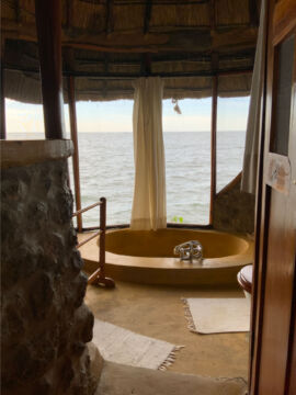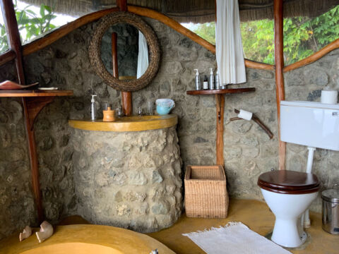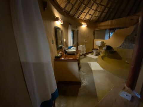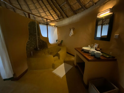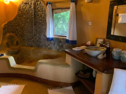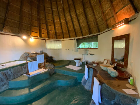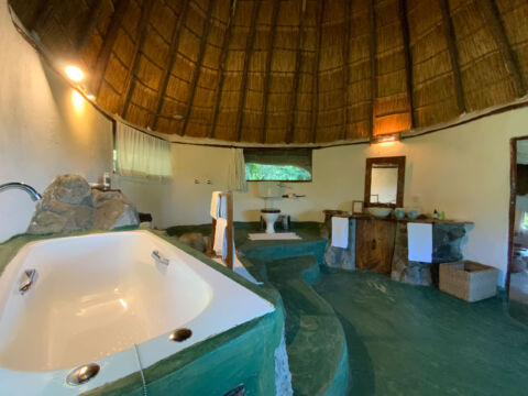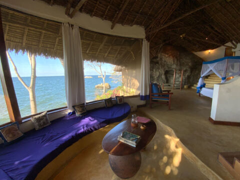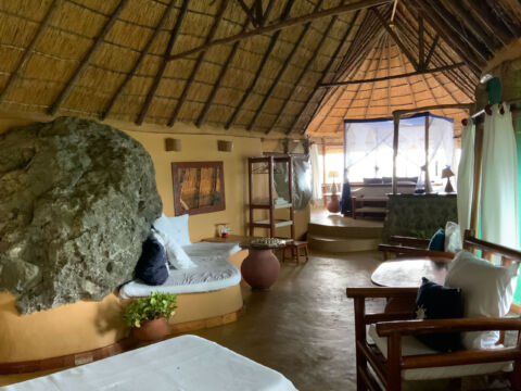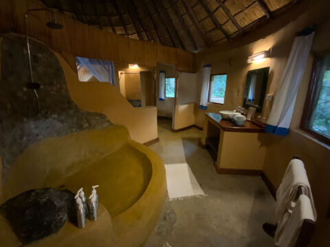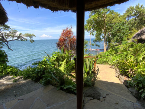 Rm7 A gorgeous and spacious room with a beautiful bathroom built around a rock. The room boasts access to a secluded little beach on the Lake and is the room closest to the swimming pool.